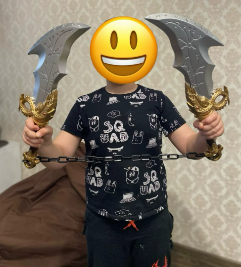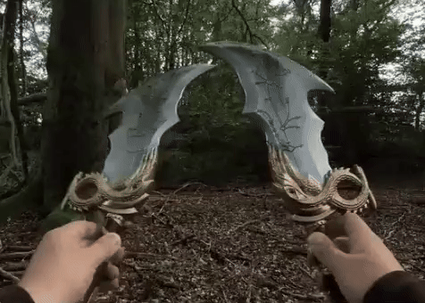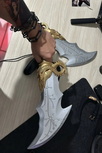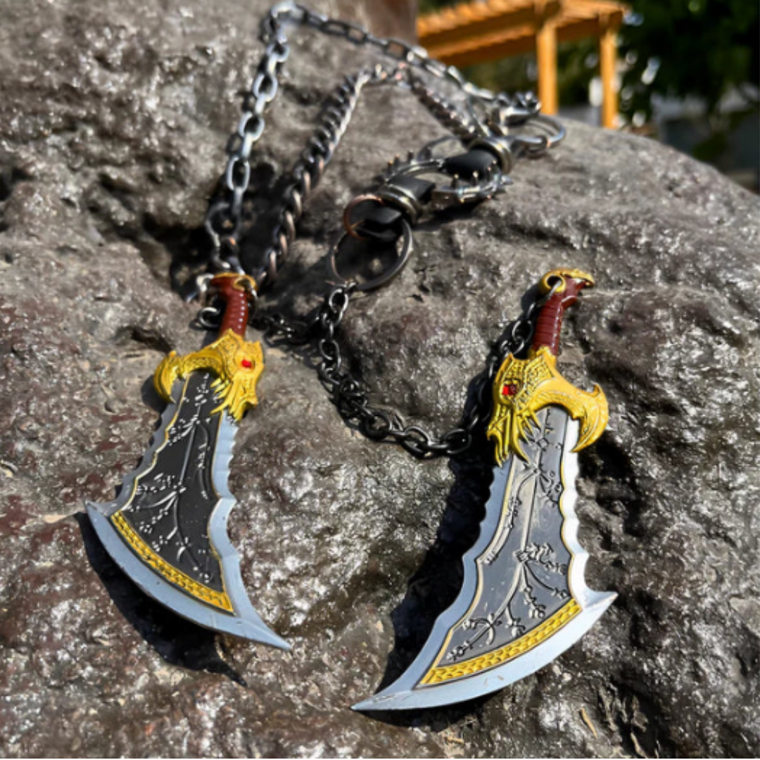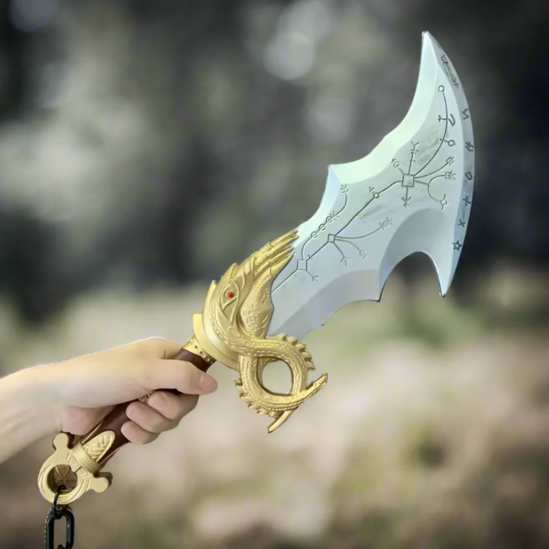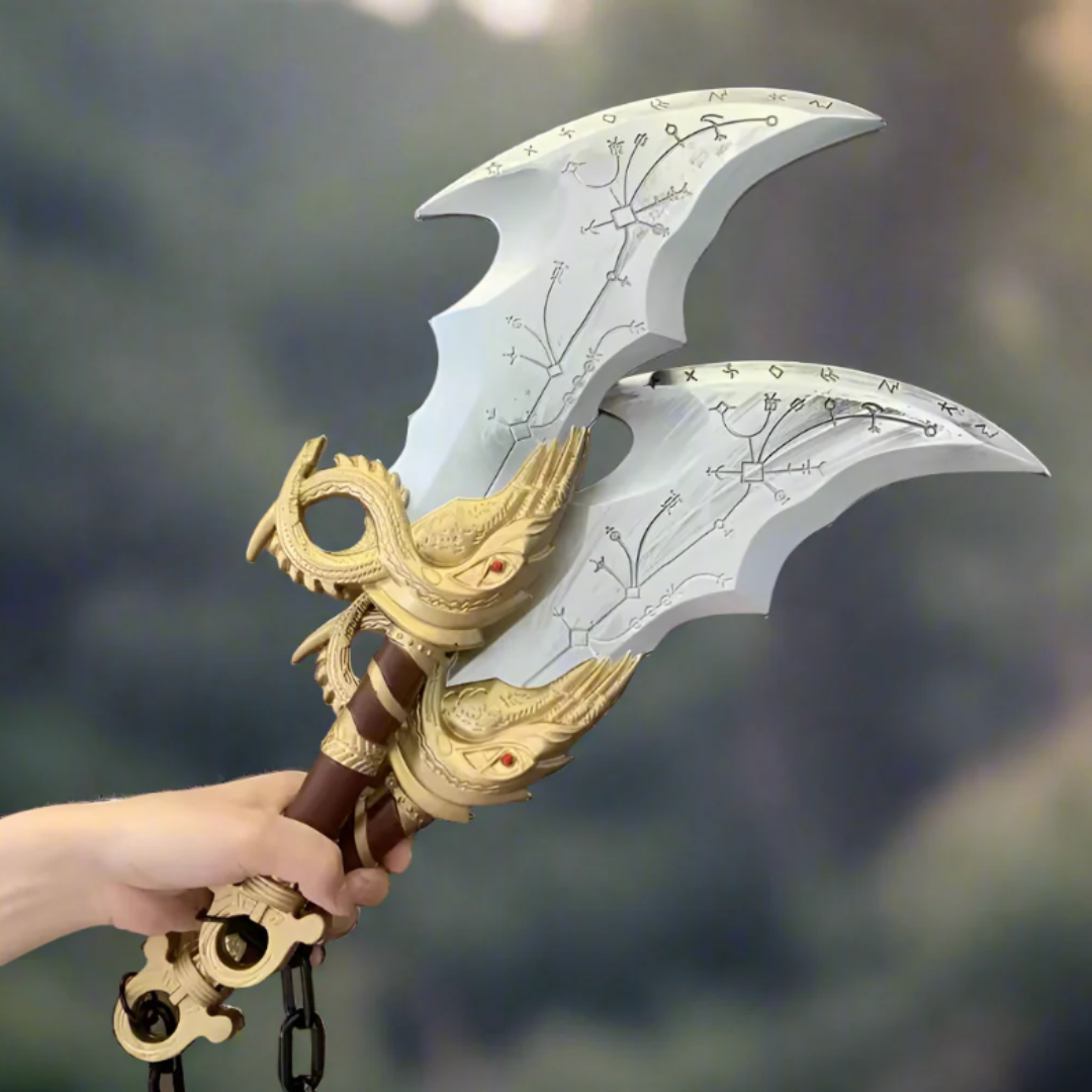 Our Full-size replica of the Blades of Chaos (45 cm) is perfect for cosplay, display, or collecting. Lightweight and safe for easy handling, it brings the legendary swords to life on an epic scale.